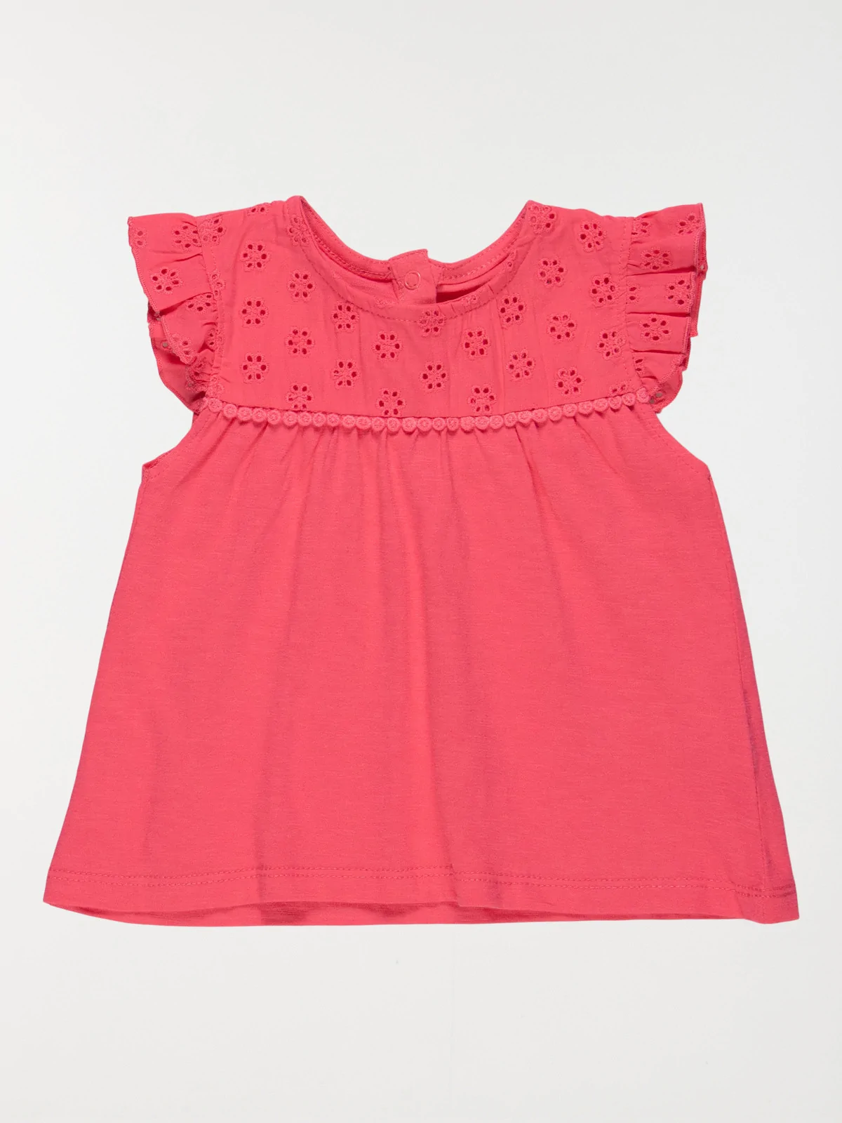 • Broderie anglaise fleurie sur le haut du modèle