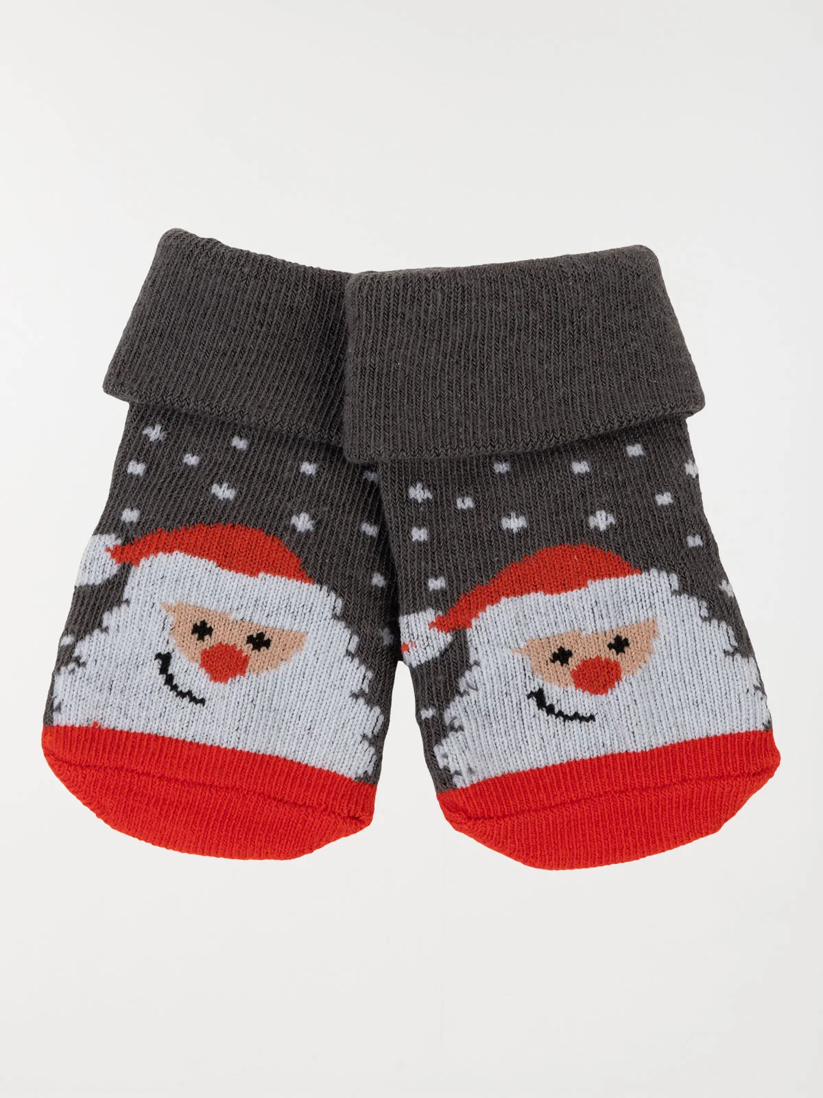 Adorable cette paire de chaussettes pour bébé ! On craque pour son imprimé Père-Noël. Un modèle idéal pour les fêtes de Noël !