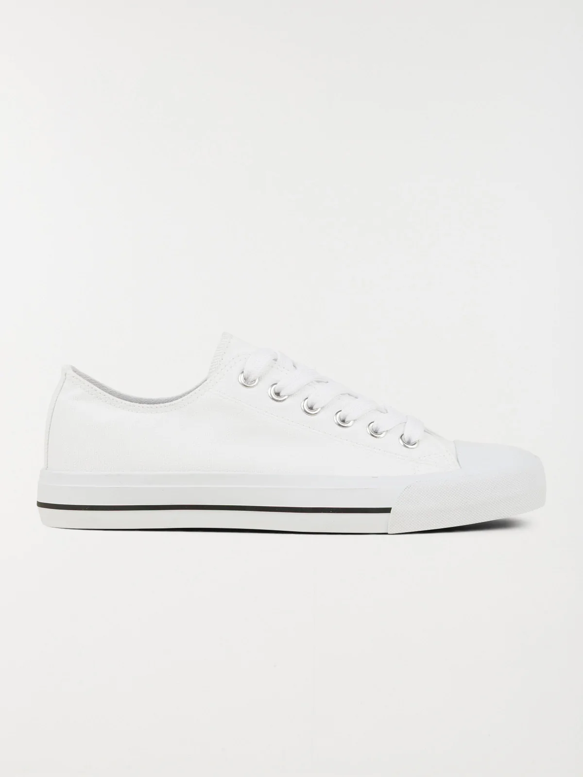 Pour un look décontracté jusqu'au bout des pieds, on adopte cette jolie paire de tennis en toile ! On se laisse séduire par son coloris blanc qui s'accordera facilement avec votre dressing du printemps.