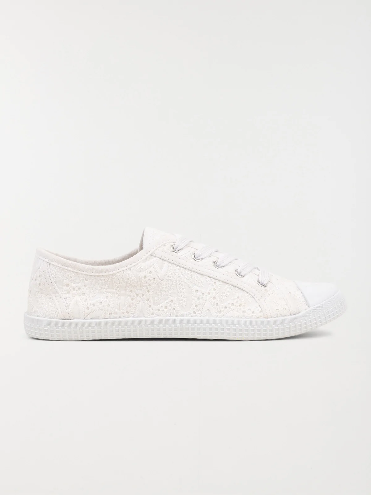 Un look mode intemporel avec cette paire de tennis femme revisitée par sa matière dentelle ! A shopper* rapidement.