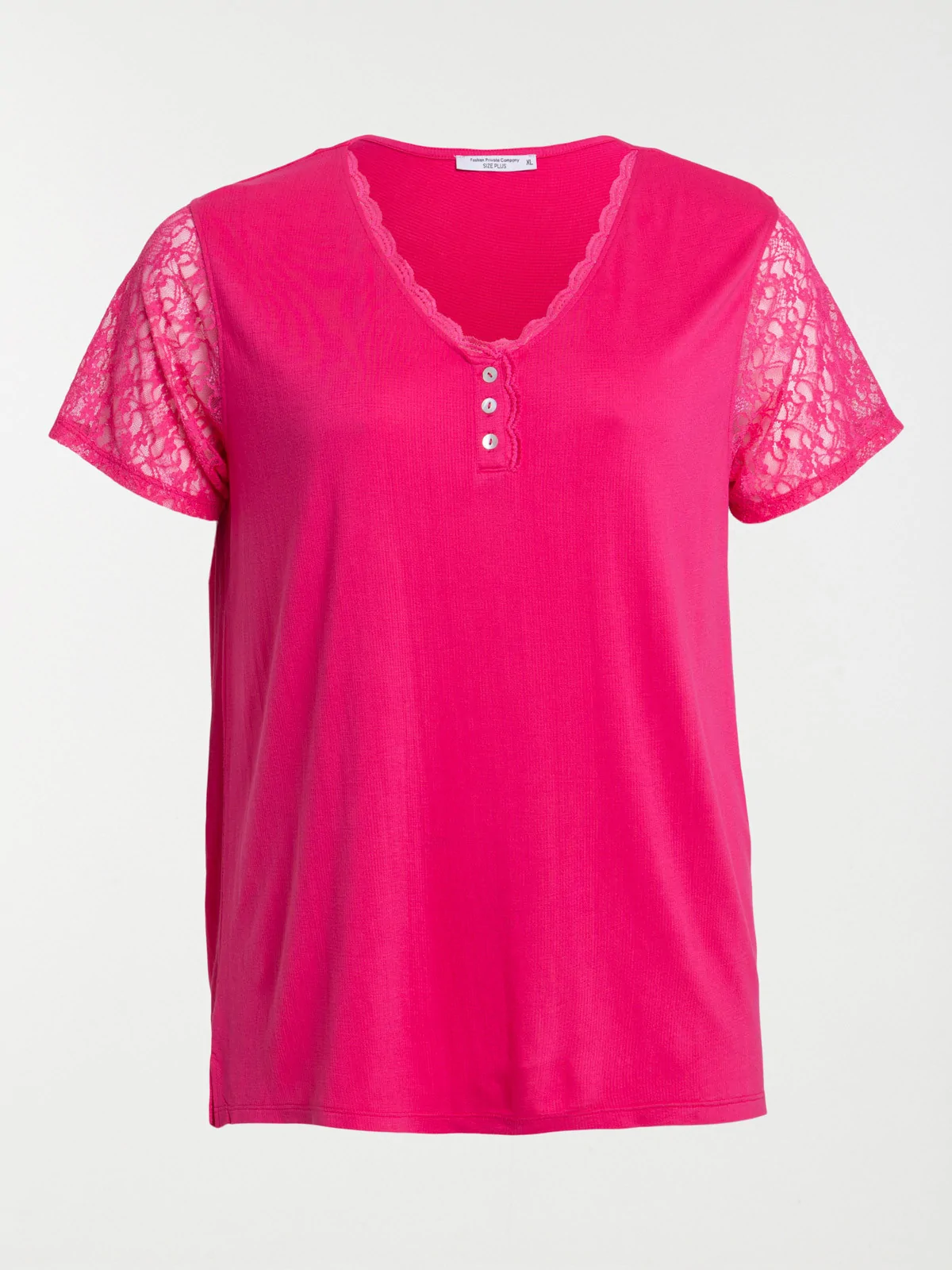 T-shirt col V fushia grande taille femme