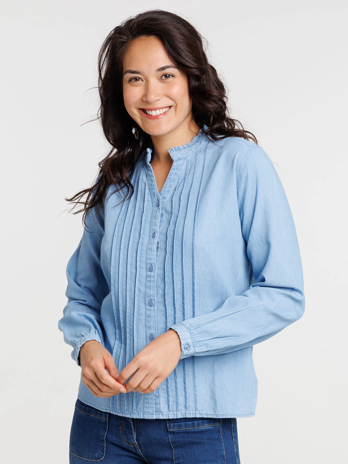 Une jolie chemise en denim pile dans la tendance de la saison ! Elle se porte facilement avec toutes les pièces du dressing.