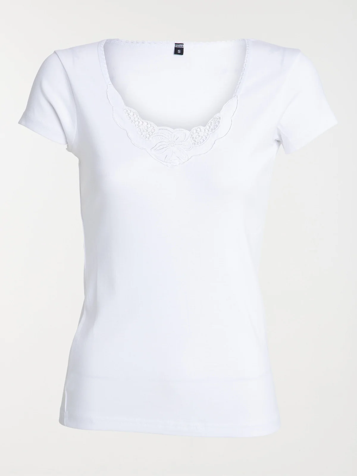 • Encolure arrondie avec broderie