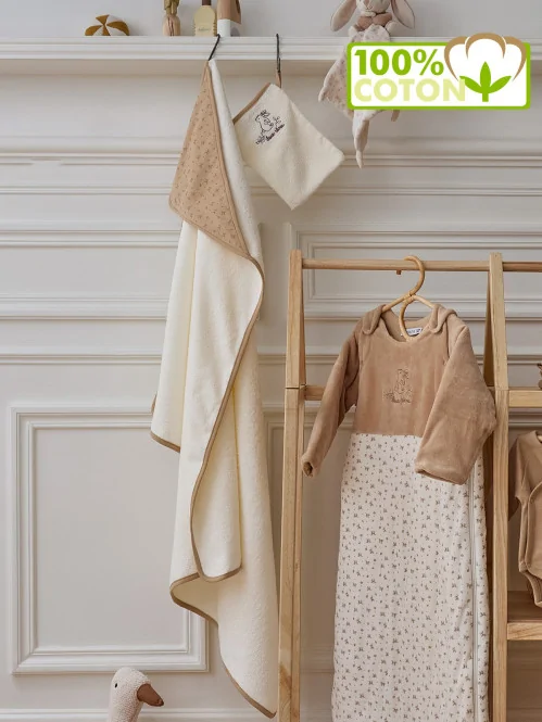 Le moment du bain est important pour votre bébé, et DistriCenter s'engage à le rendre aussi agréable que possible avec notre gamme de produits de bain de haute qualité et à pas cher. Profitez de nos carrés de bain et gants tout doux, spécialement conçus pour le confort de votre bébé. Nos capes de bain mesurent 75 x 75 cm et sont accompagnées de gants assortis de 21 x 15 cm. Fabriqués en 100% coton, nos carrés de bain sont parfaits pour envelopper votre bébé dans la douceur et la chaleur après le bain. La capuche ornée d'un motif adorable ajoute une touche de charme, en gardant la tête de votre petit bien au chaud !