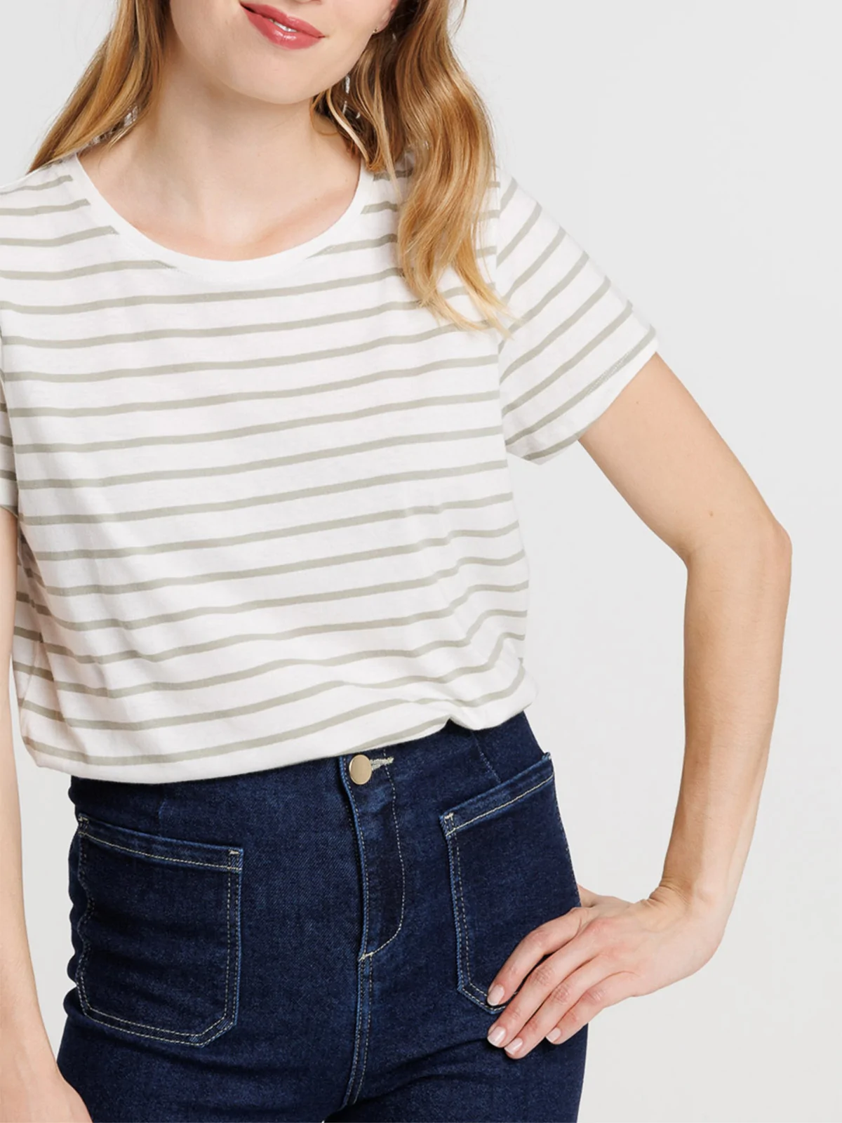 Tee-shirt écru rayé mousse femme