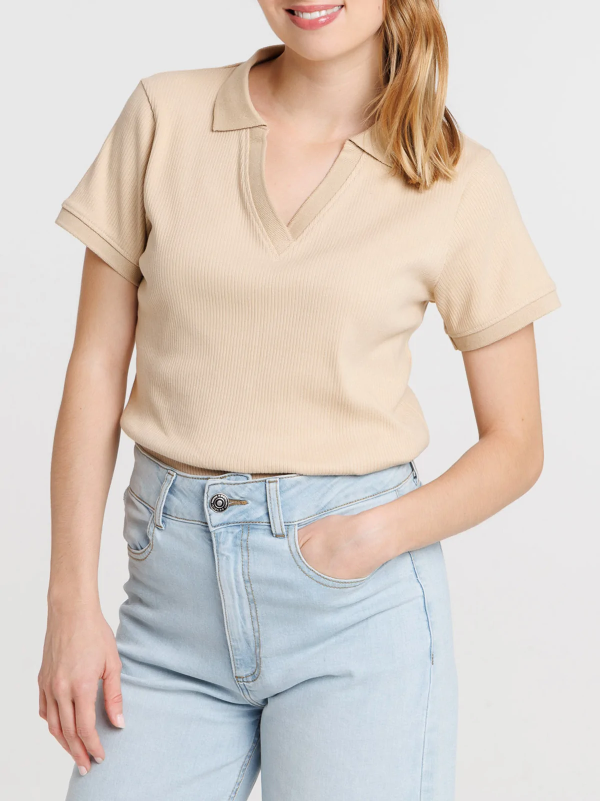 Polo beige côtelé femme