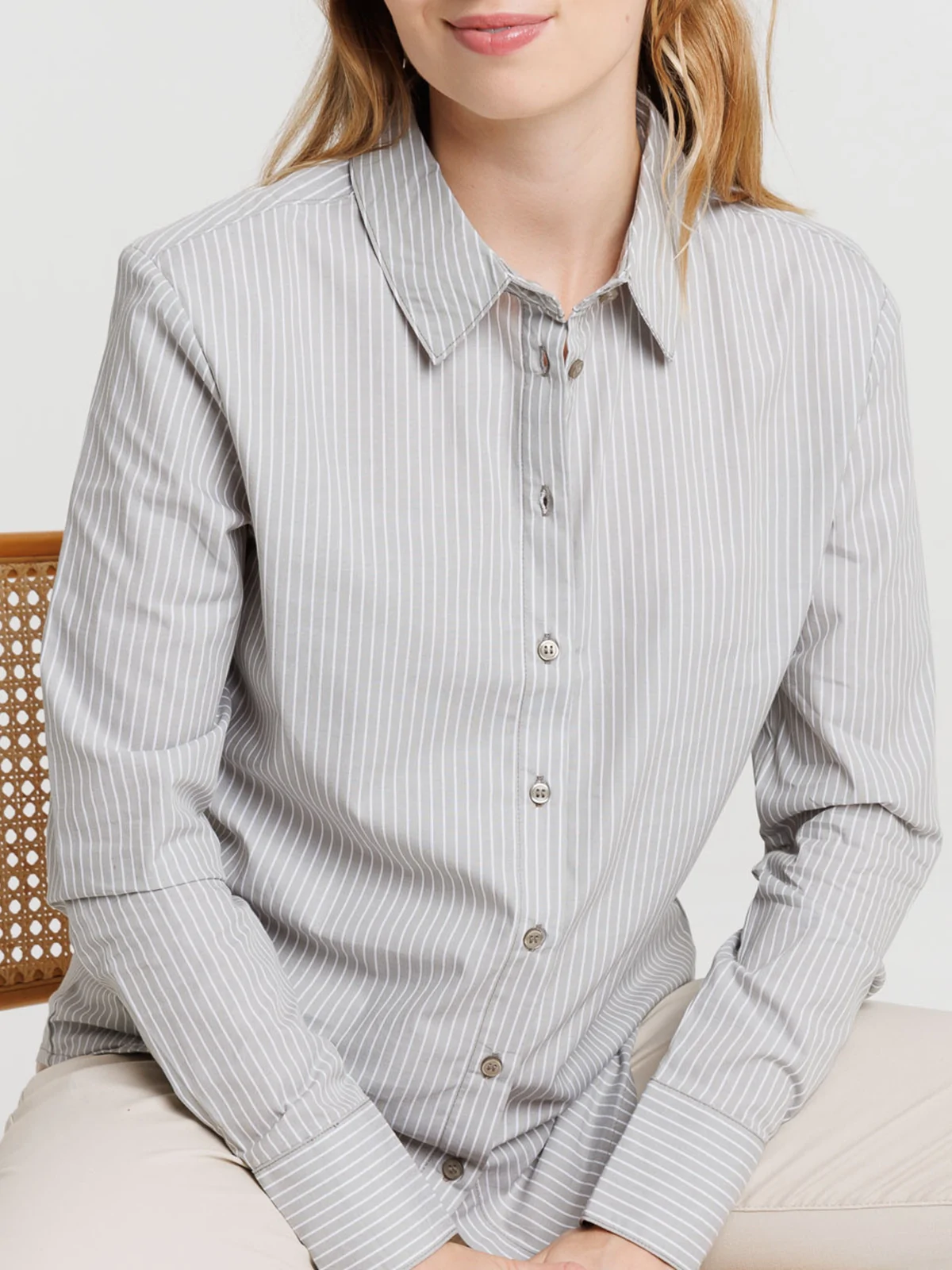 La chemise femme rayée fait son grand retour et on adore ! On l'imagine facilement avec un jean flare.