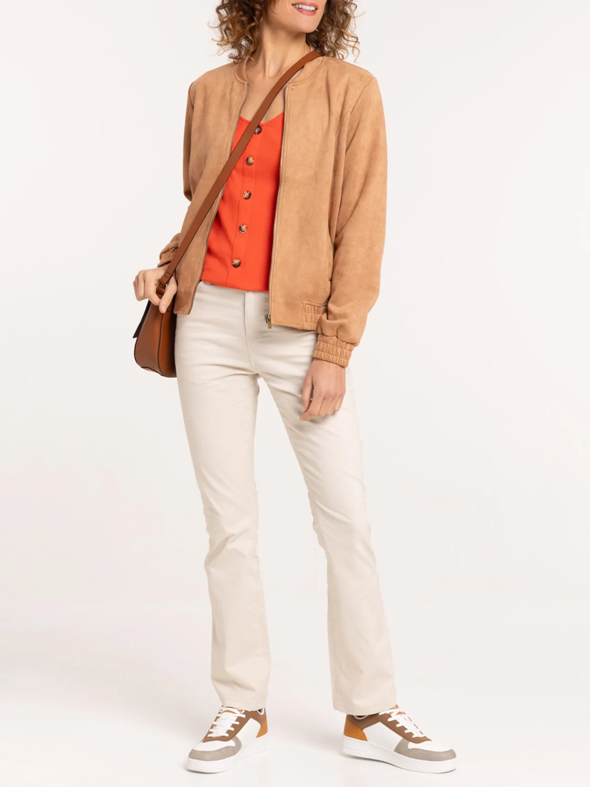 Veste bomber suédine camel femme