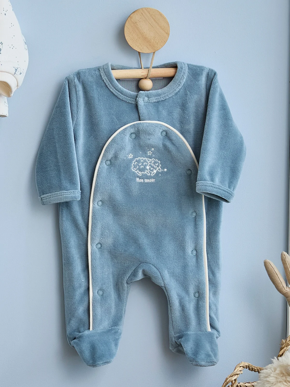 Ouverture devant pour un habillage facile et motif craquant, ce dors-bien en velours est parfait pour le trousseau de maternité !