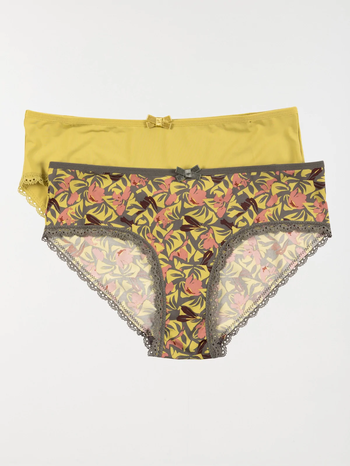 Un lot de 2 shorties basique joliment agrémenté d'un bord en dentelle festonnée, on adore ! À coordonner avec le lot de soutiens-gorge assorti.