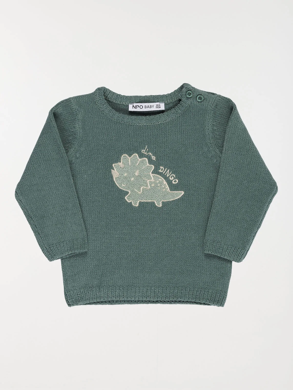 Un joli pull stylé avec son motif dinosaure : ON ADORE ! Il est pratique avec son ouverture par boutons sur l'épaule pour faciliter l'habillage.