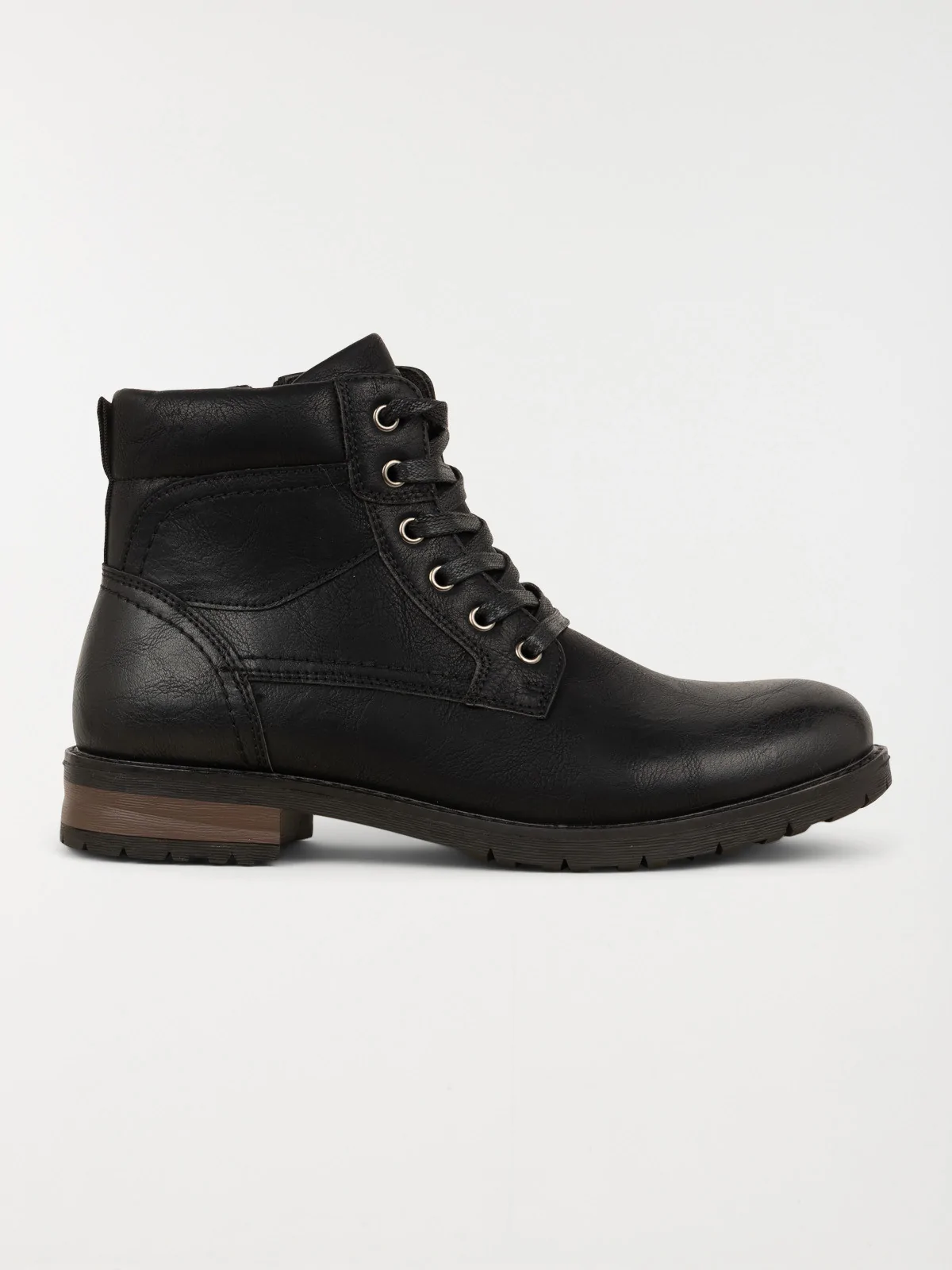 Une jolie paire de chaussures montantes pour vous accompagner au quotidien. Elle est déclinée en coloris noir. À porter avec une chemise et un jean.