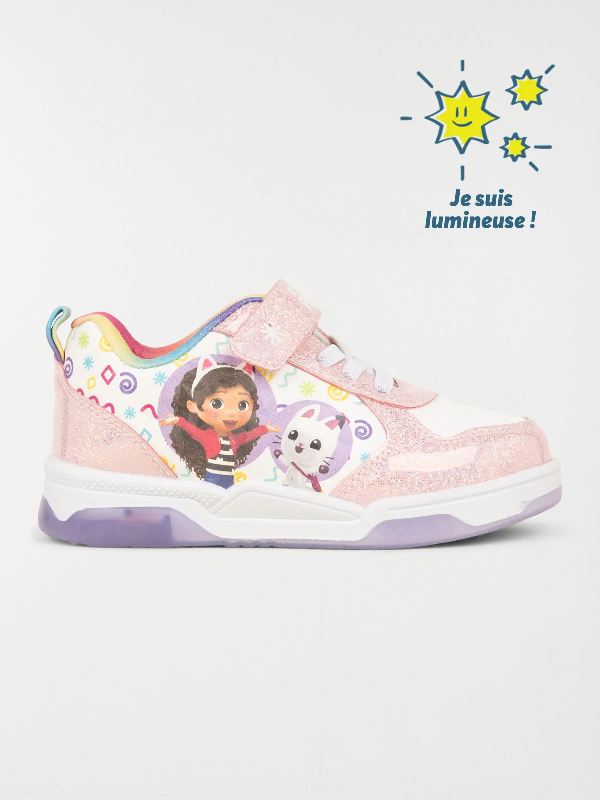 C'est les baskets indispensables pour les filles fans de Gabby's Dollhouse ! Notez son ouverture à scratch avec lacet élastiqué, ses imprimés, son mix de matières et sa semelle lumineuse.