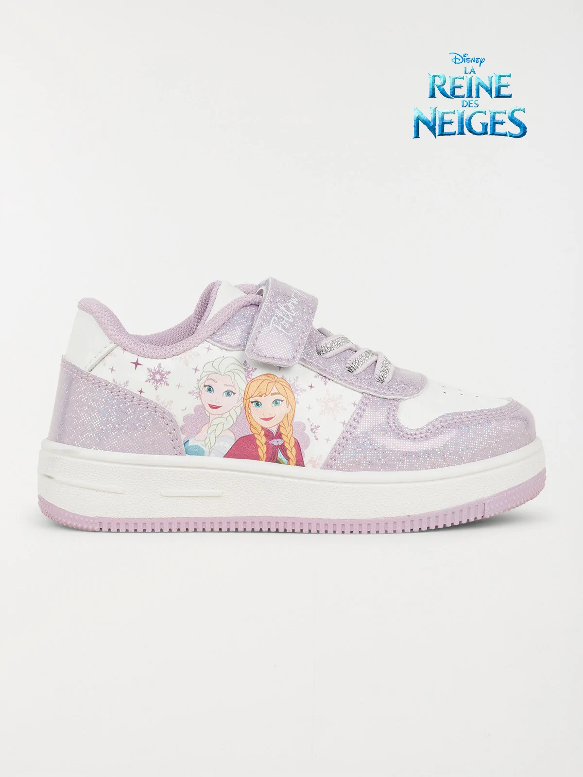 C'est les baskets indispensables pour les filles fans de La Reine des Neiges ! Notez son ouverture à scratch avec lacet élastiqué, ses imprimés et son mix de matières.