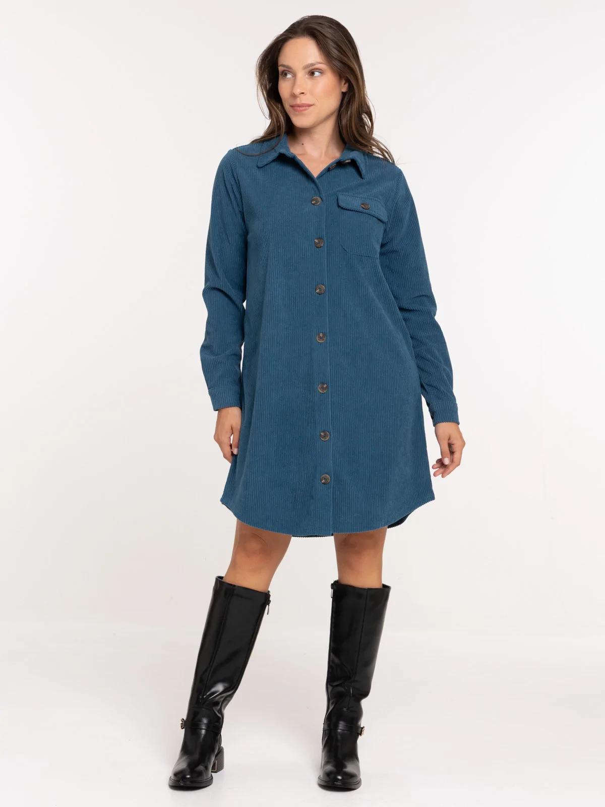 Une jolie robe en velours qui se porte droite ou ceinturée avec une paire de bottes. Elle fera d'emblée partie des petites préférées du dressing !