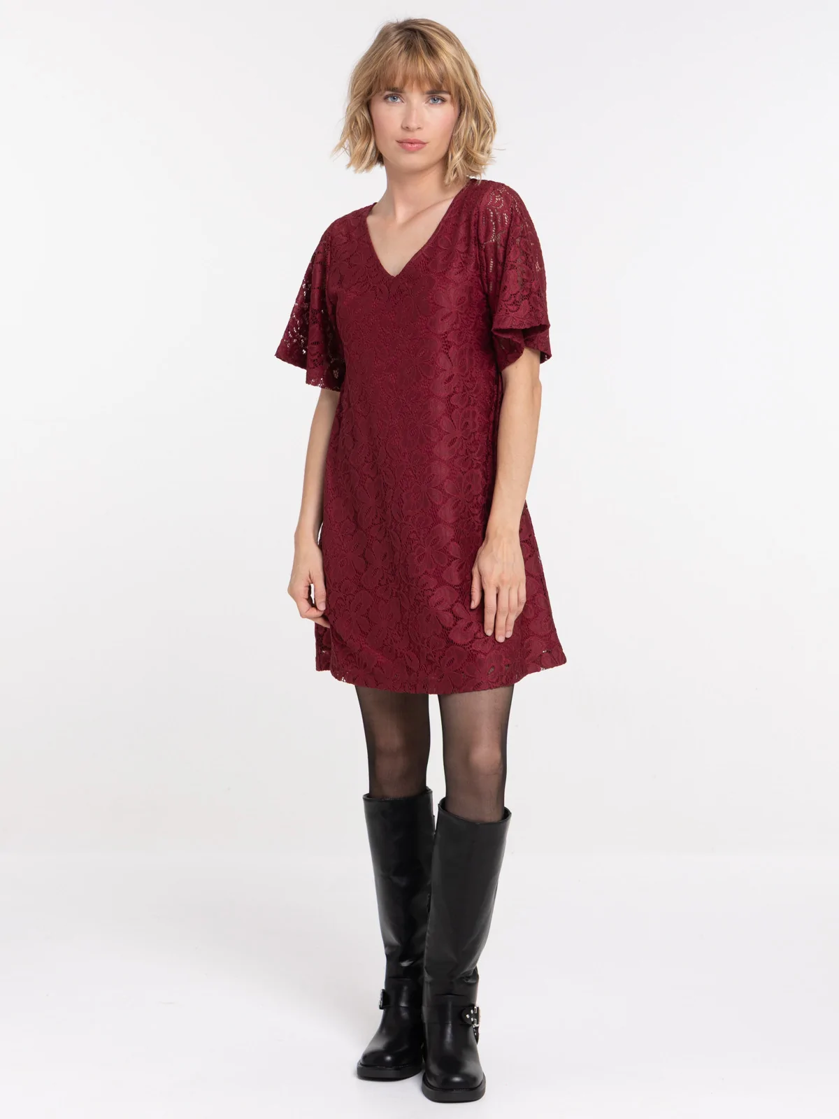 Cette robe en dentelle a vraiment tout pour plaire ! On l'associe à une paire de bottines à talons.