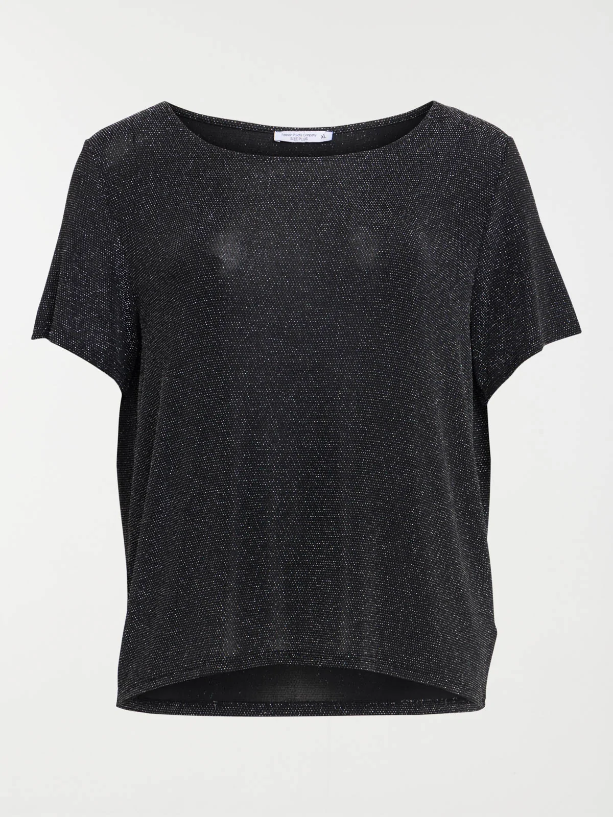 On adore ce t-shirt brillant qui sera parfait avec un pantalon large, une petite veste blazer et une paire d'escarpins. Idéal comme tenue de fête !