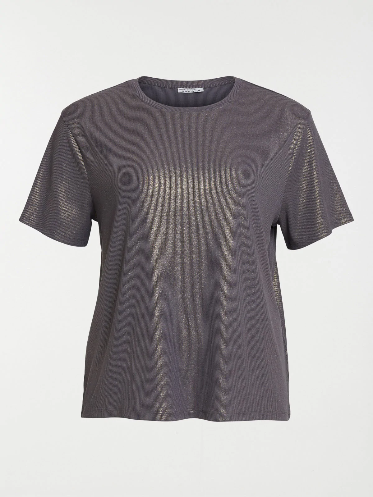 Un t-shirt côtelé résolument féminin comme on aime pour les fêtes de fin d'années. Son coloris gris orage s'associera facilement à toutes les pièces de votre dressing.