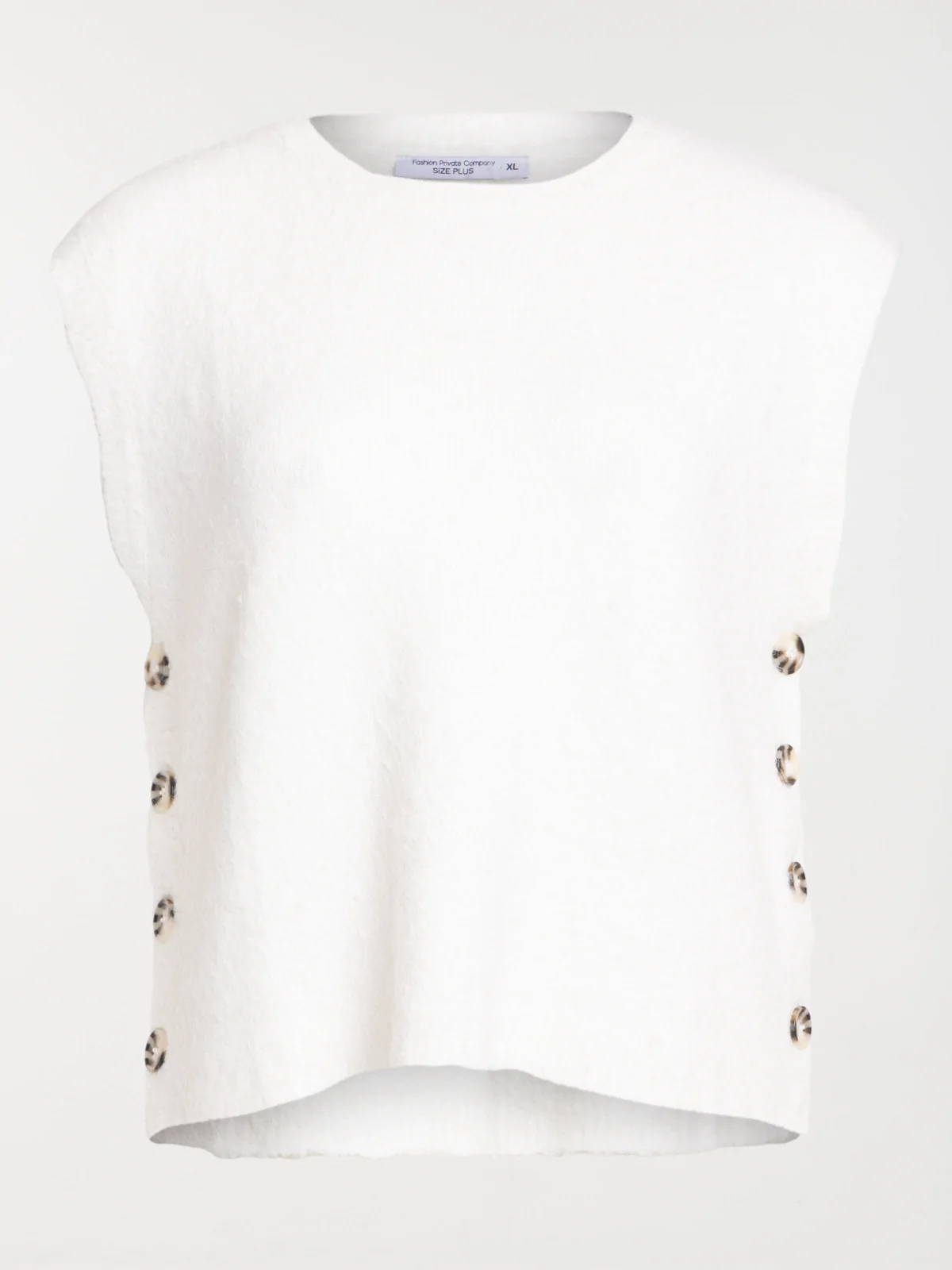 Optez pour ce pull sans manches pile dans la tendance avec ses boutons sur les côtés ! A mettre avec une chemise sur un jean ou un pantalon flare, il sera parfait pour compléter tous vos looks !