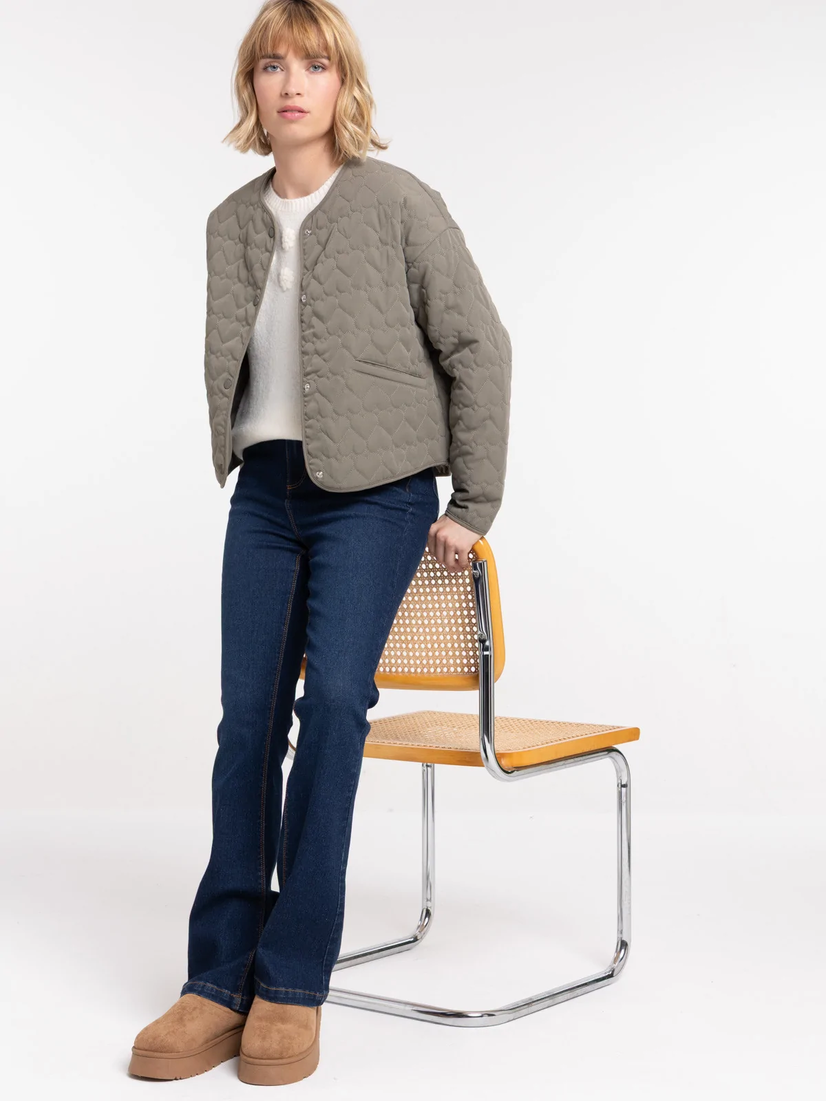 Alerte tendance ! On fait le focus sur le côté matelassé motif coeur de cette jolie veste. Elle est parfaite pour la mi-saison.