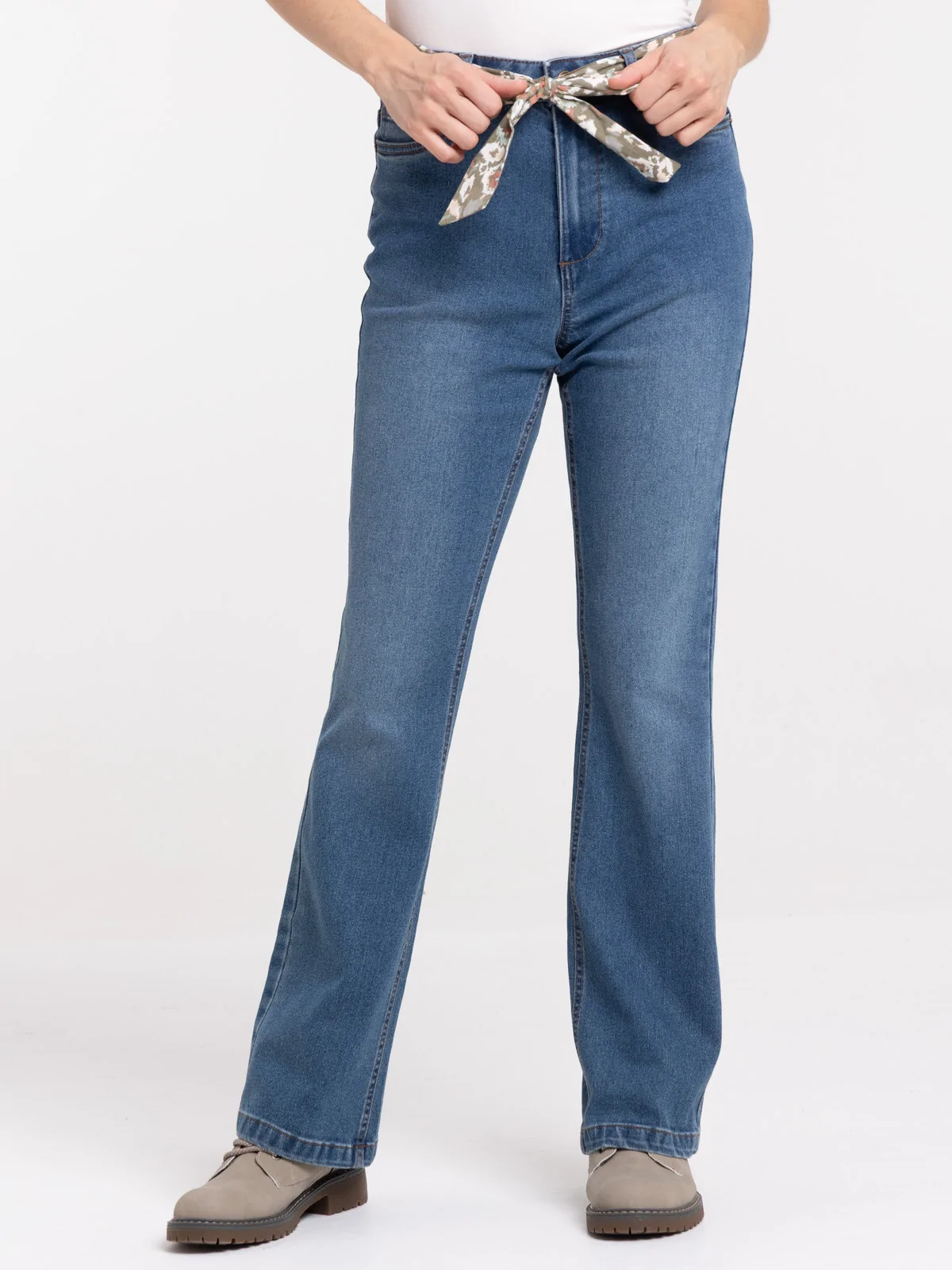 Le jean flare élance la silhouette et affine les jambes. On lui associe des chaussures à talons pour gagner quelques centimètres.