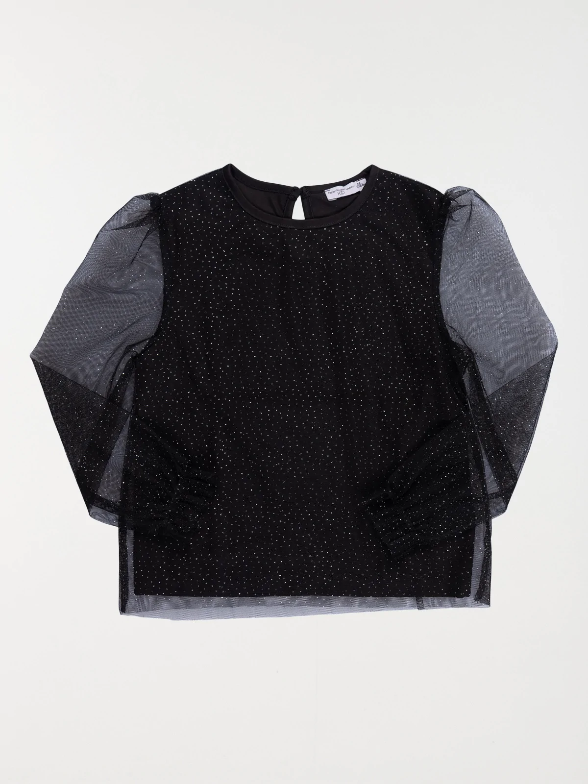 Ce t-shirt est parfait pour toutes les grandes occasions de la saison. Il possède un bouton au dos pour un habillage facile. Avec son motif pois doré, il permet de briller lors des soirées.