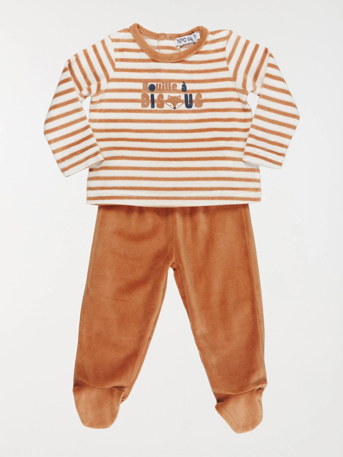 Un pyjama tout doux et trop craquant qui promet des nuits paisibles ! Il se compose d'un haut à manches longues fermé par boutons pression dans le haut du dos et d'un pantalon avec taille élastique.