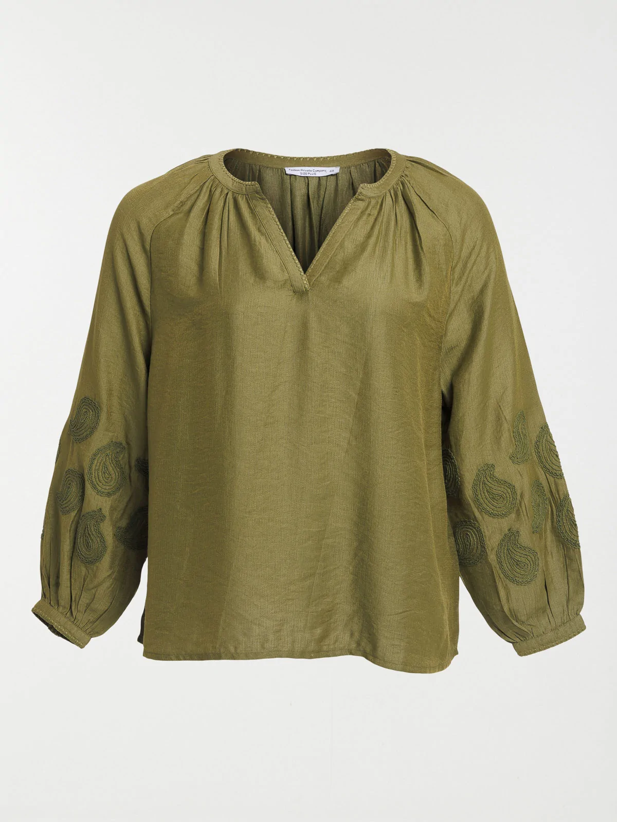 Cette blouse légère est une vraie merveille ! On zoome sur ses broderies. On l'associe facilement aux pièces du dressing.