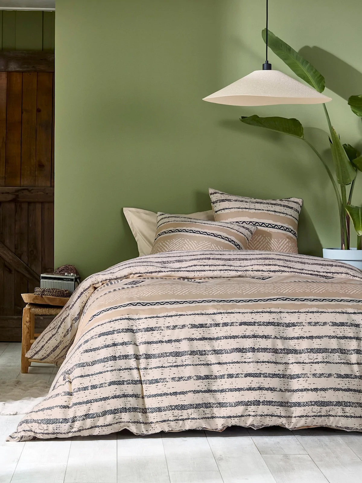 Cette parure au motif graphique apporte de la dimension et de la profondeur à votre chambre. On aime son imprimé ethnique.