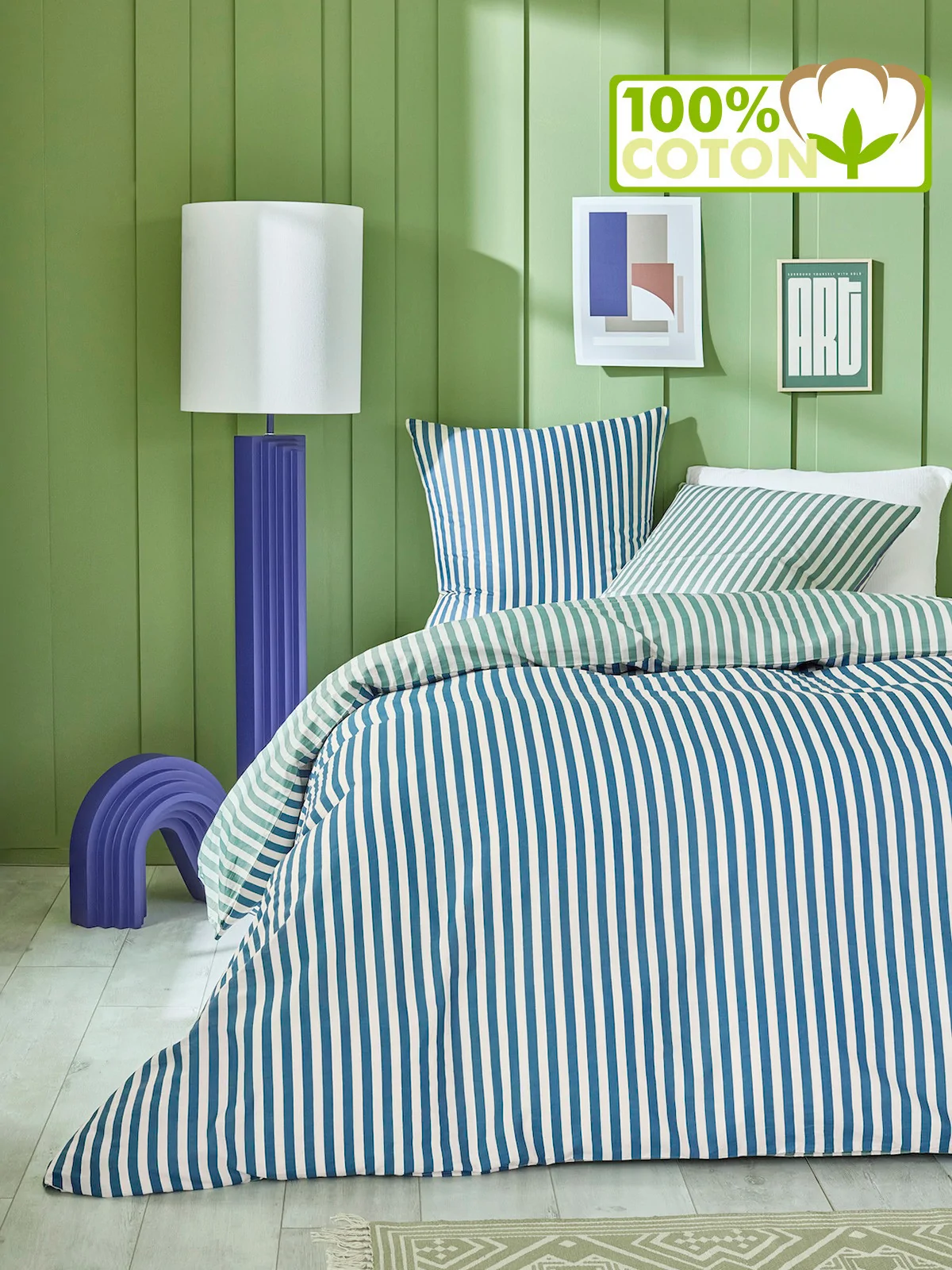 Une parure de lit tendance avec ses rayures qui apportent de la modernité et du contraste à votre chambre. Fabriquée en 100 % coton, cette housse de couette avec taies d'oreiller assorties vous enveloppe de douceur.