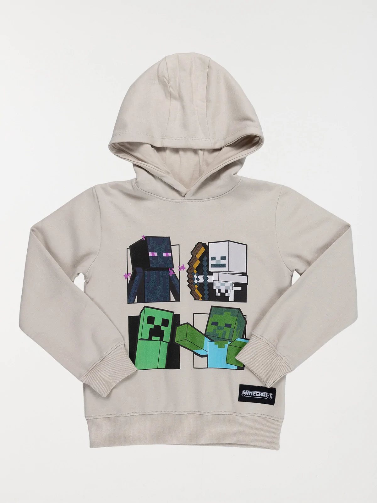 On plonge immédiatement dans l'univers de Minecraft avec ce sweat à capuche, il est idéal pour les fans de pixel et d'aventure !