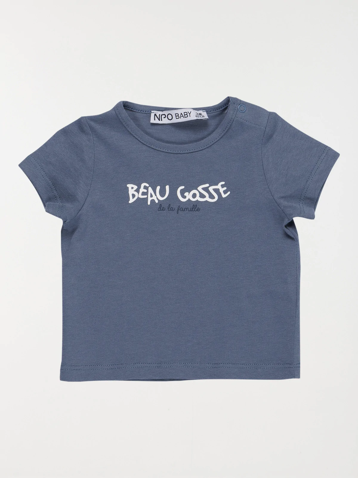 Un t-shirt parfait pour le beau gosse de la famille. On lui associe un jean et une paire de tennis.