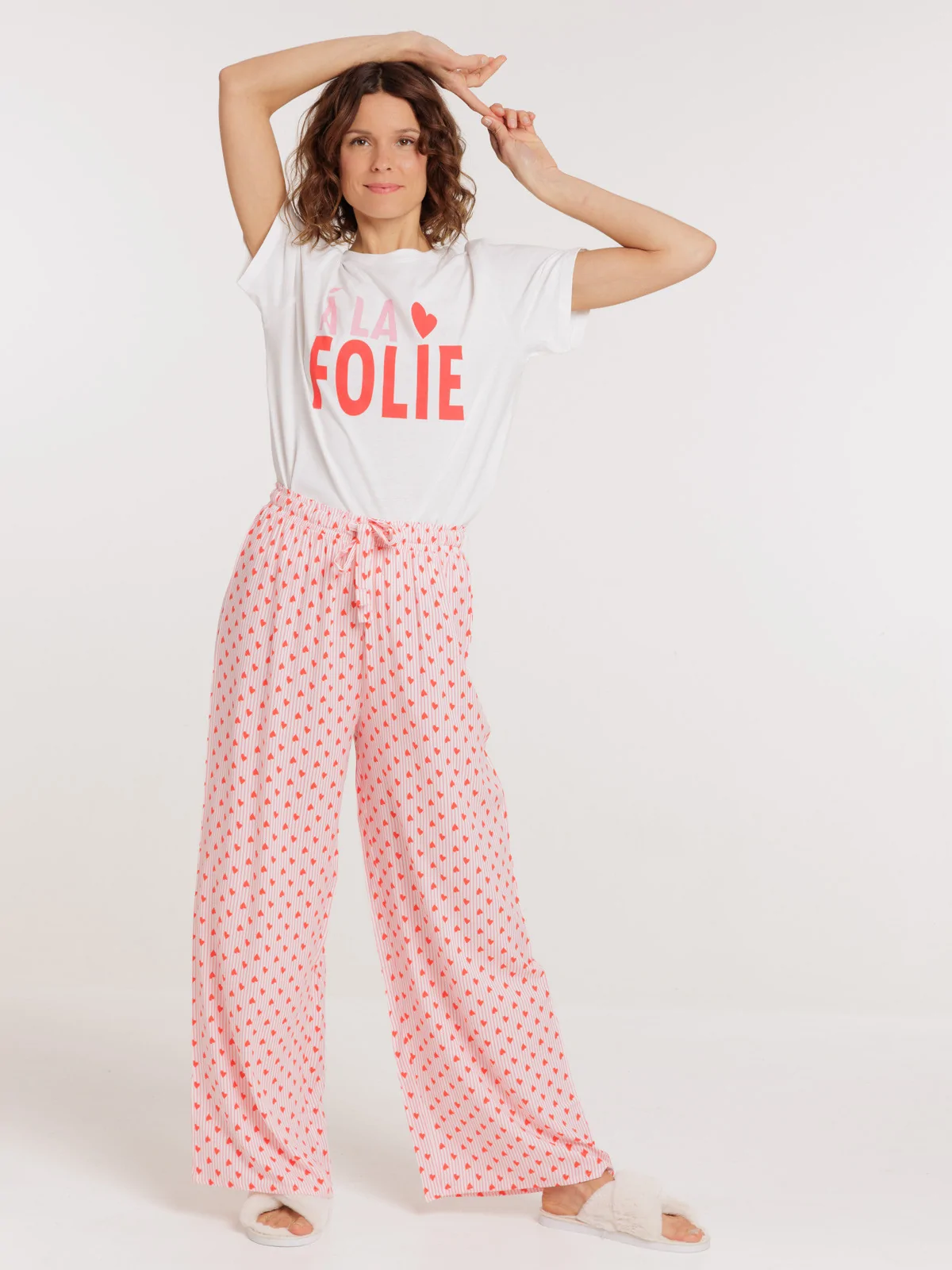 Craquez pour ce pyjama spécial Saint-Valentin plein d'amour et de douceur ! Composé d'un t-shirt à message “À la folie” et d'un pantalon imprimé de coeurs all over*, il allie confort et romantisme à la perfection. Un ensemble parfait à offrir ou à s'offrir pour célébrer l'amour avec style et confort.
