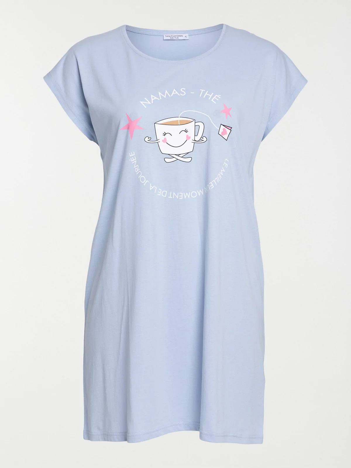 Parfait pour chiller avec style ! Cette chemise de nuit pleine d'humour et de douceur affiche un joli jeu de mots "Namas-thé, le meilleur moment de la journée" qui invite à la relaxation après une longue journée.