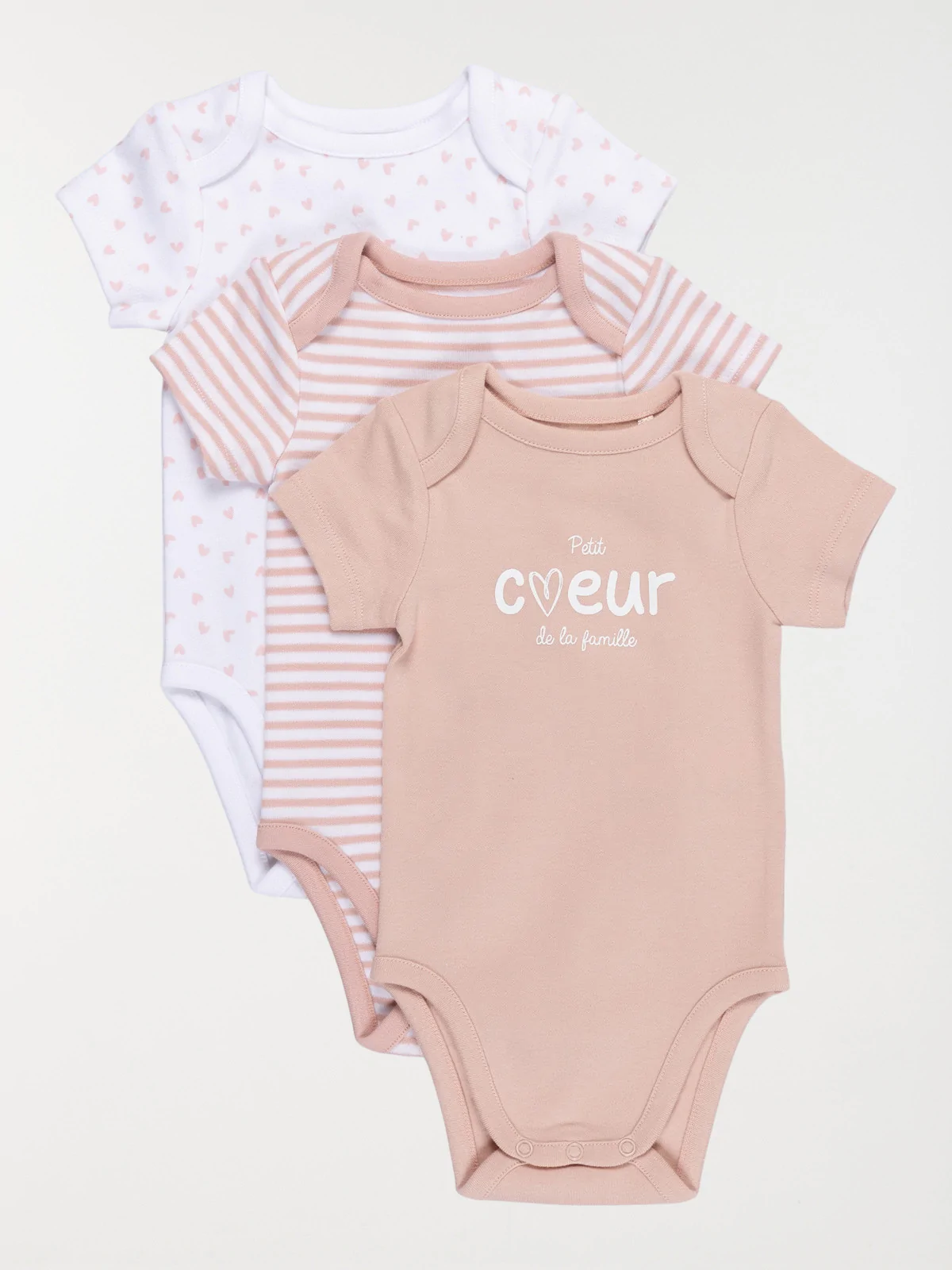 Un adorable trio de bodies pour habiller bébé avec douceur et tendresse ! Des basiques confortables et mignons, parfaits pour le quotidien.