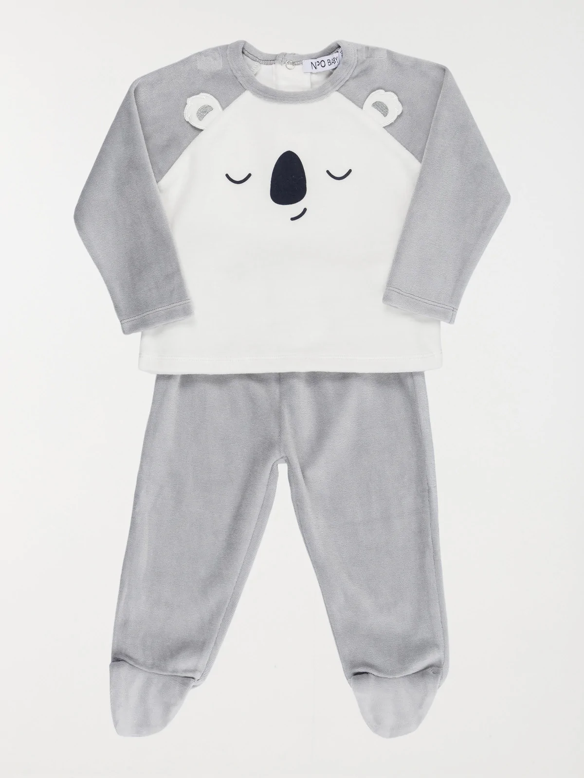 Un joli pyjama d'une grande douceur et confortable pour bébé ! Il est composé d'un haut et d'un bas avec taille élastiquée.