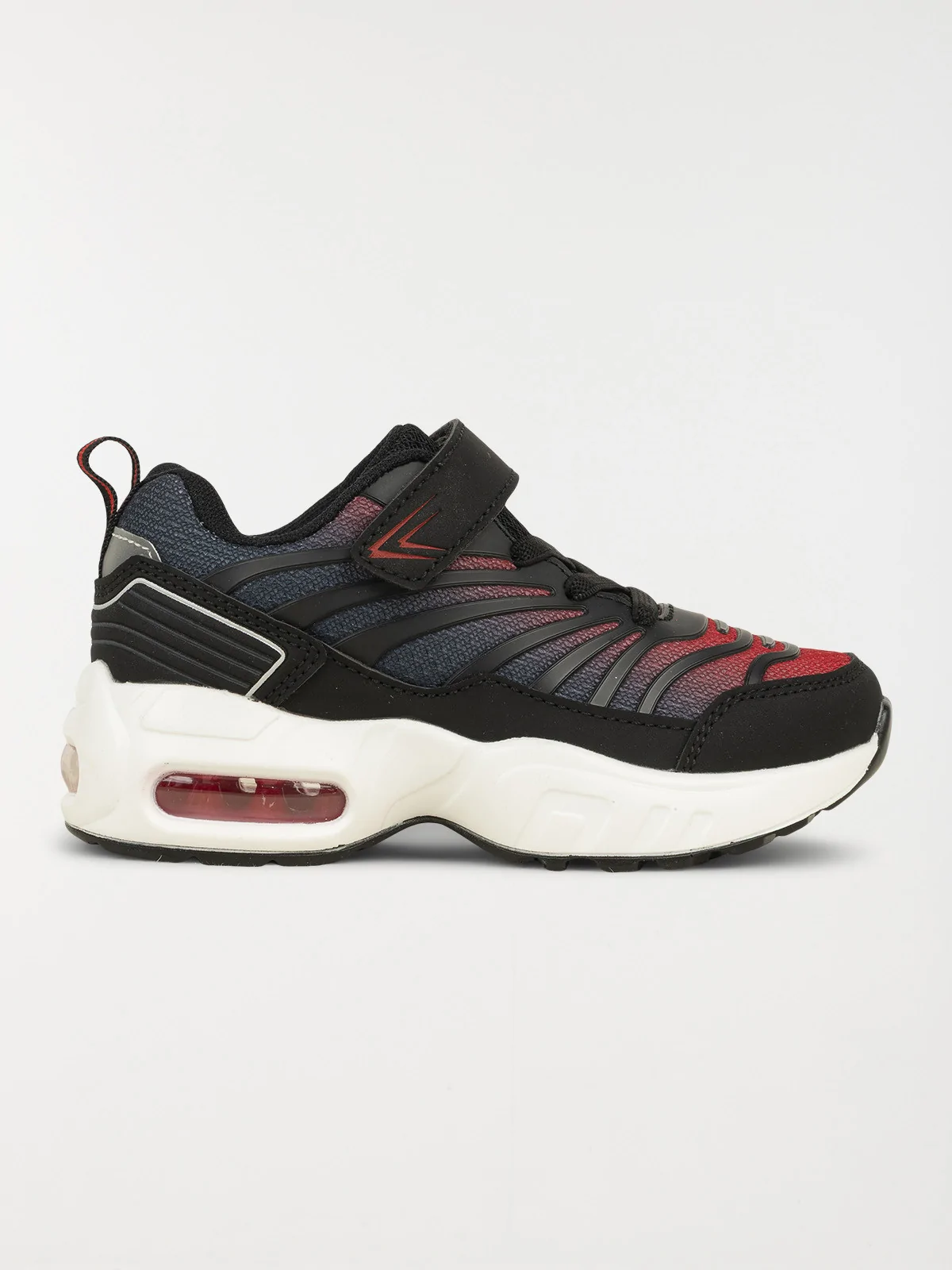 Les garçons vont adorer porter cette paire de baskets ! Elles sont rapides à enfiler avec sa fermeture par scratch et lacet élastiqué. Sa semelle avec bulle au niveau du talon lui donne un look tendance et moderne.