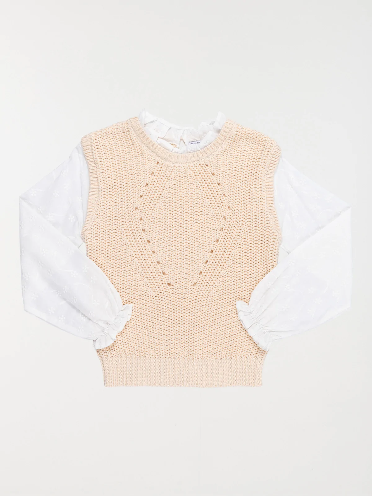 Associé, ici à la broderie anglaise, ce pull signe un style à la fois bohème et pile dans l'air du temps. Un joli modèle qui relèvera par son originalité tous les bas de leur dressing.