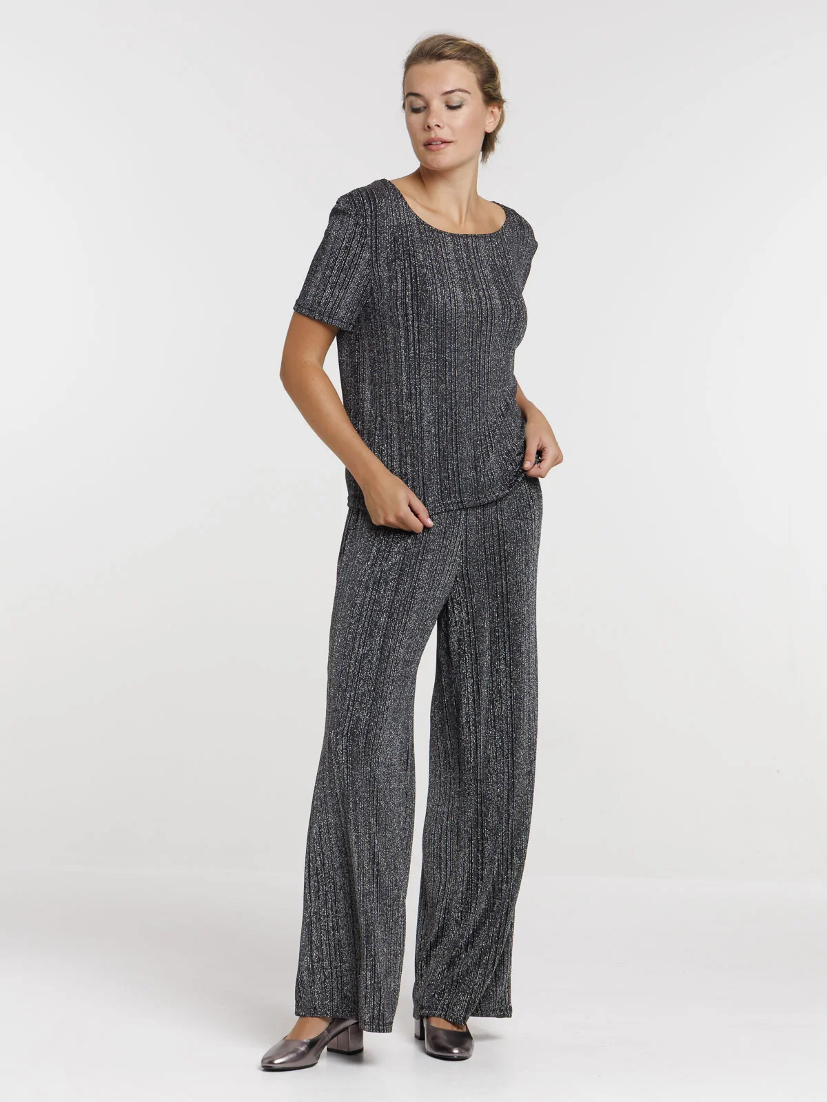 On adore ce t-shirt brillant qui sera parfait avec un pantalon large, une petite veste blazer et une paire d'escarpins. Idéal comme tenue de fête !