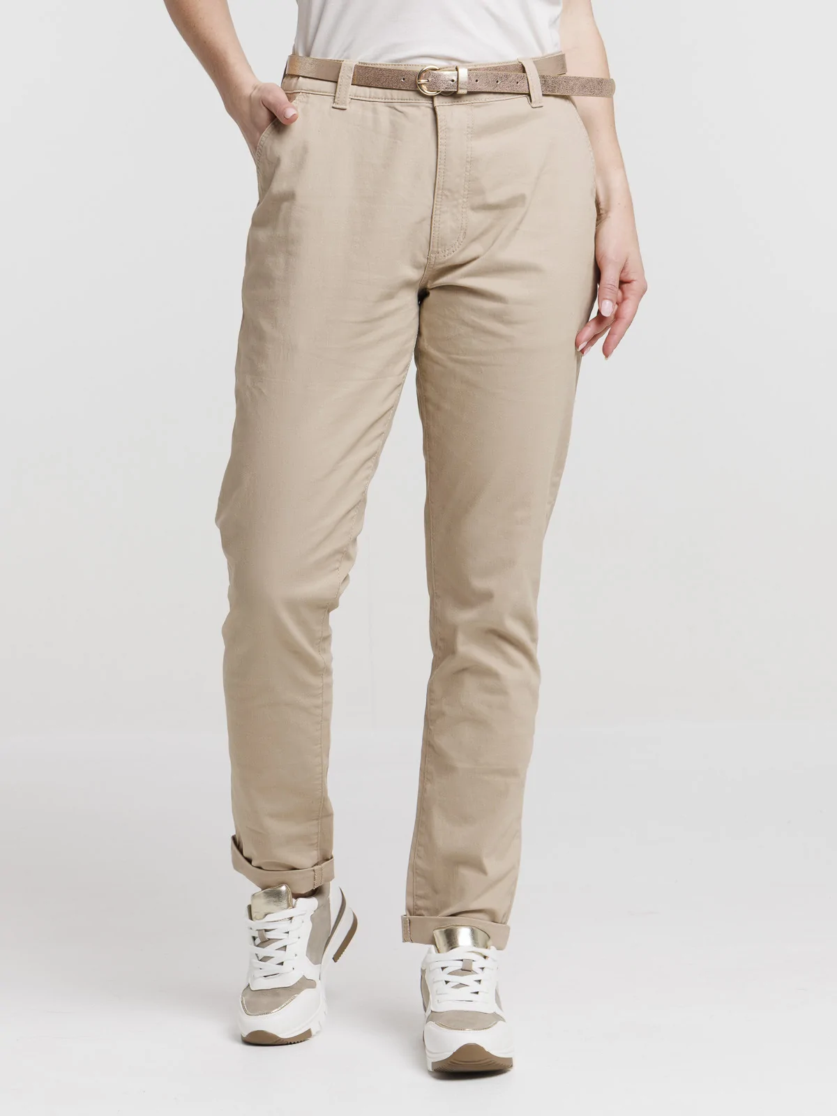 Pantalon chino slim ceinturé femme