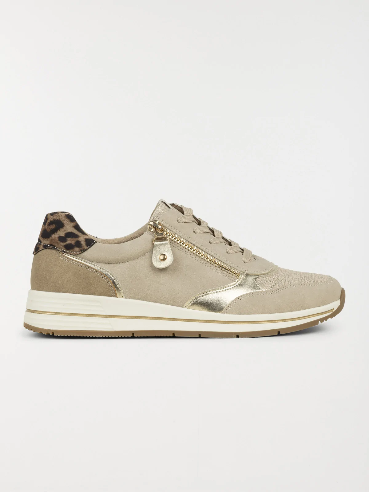 Faites rimer confort et style avec ces baskets femme au design tendance ! Elles sont rehaussées d'un col arrière à imprimé léopard et de détails dorés subtils. Une paire qui apporte une touche d'originalité à vos looks du quotidien.