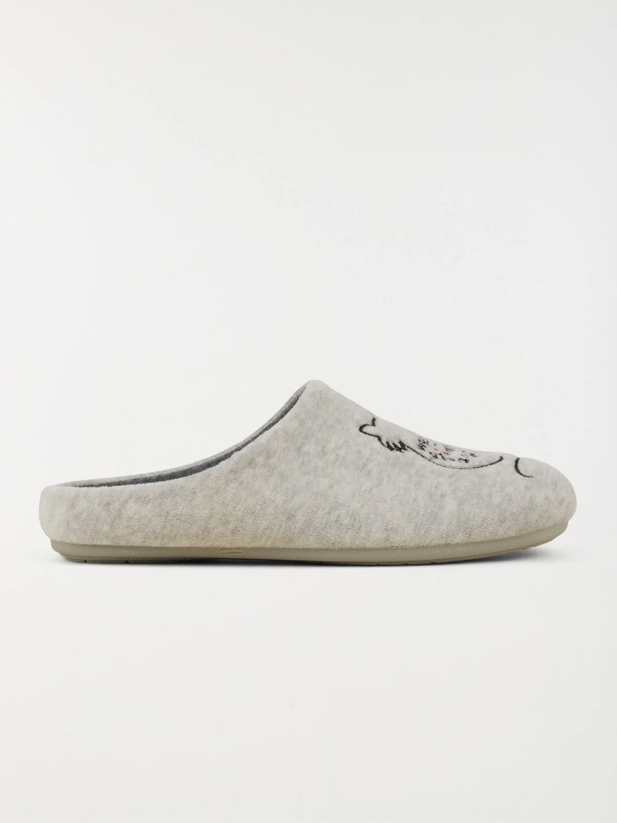 On adore la forme mule de cette paire de chaussons ainsi que son motif et son message brodés sur le devant.