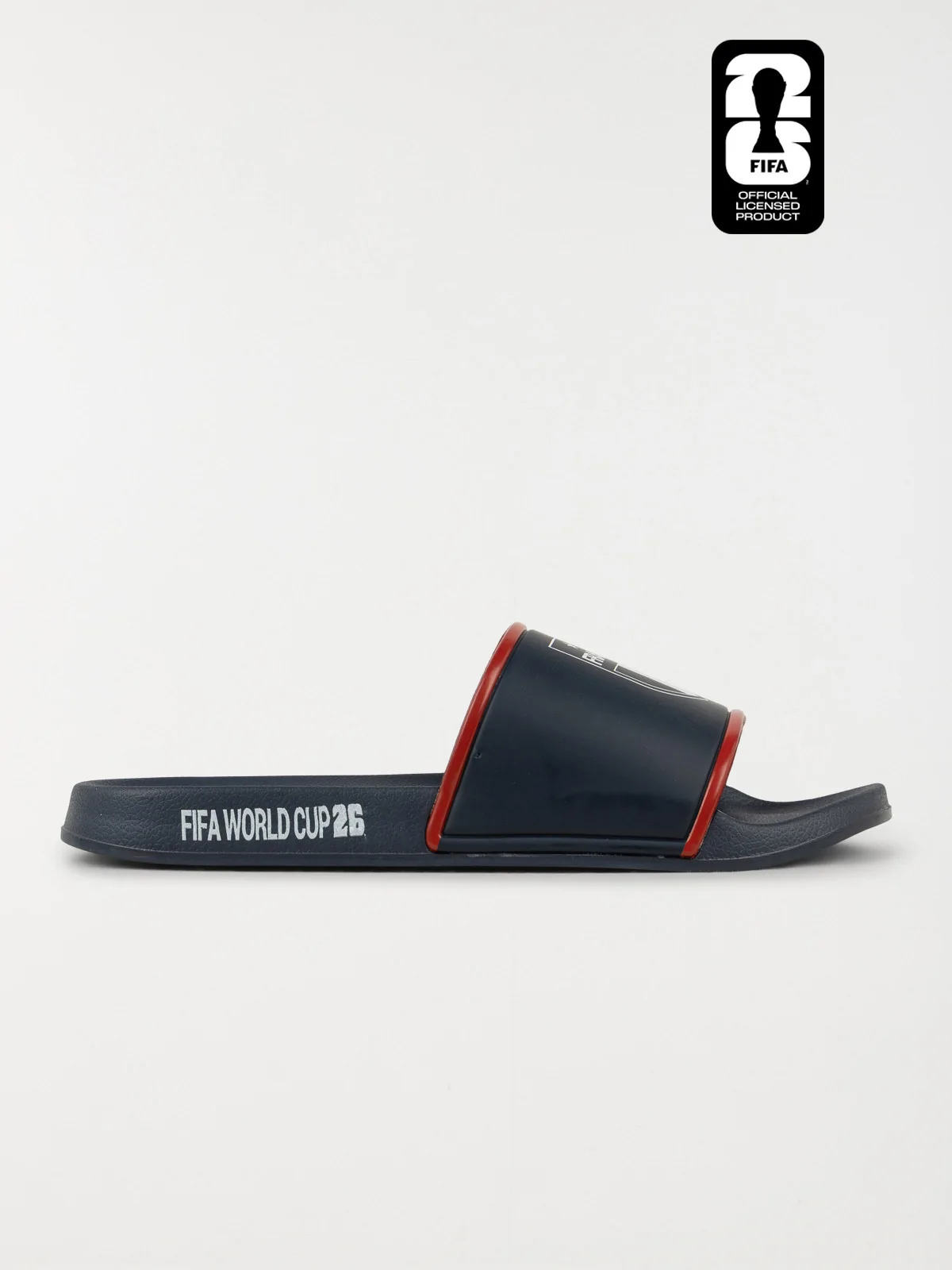 Affichez votre passion pour le football avec ces claquettes officielles FIFA World Cup, conçues pour offrir confort et style tout au long de l'été ! Faciles à enfiler grâce à leur bride large, ces claquettes arborent un design moderne aux couleurs et logos officiels de la Coupe du Monde.