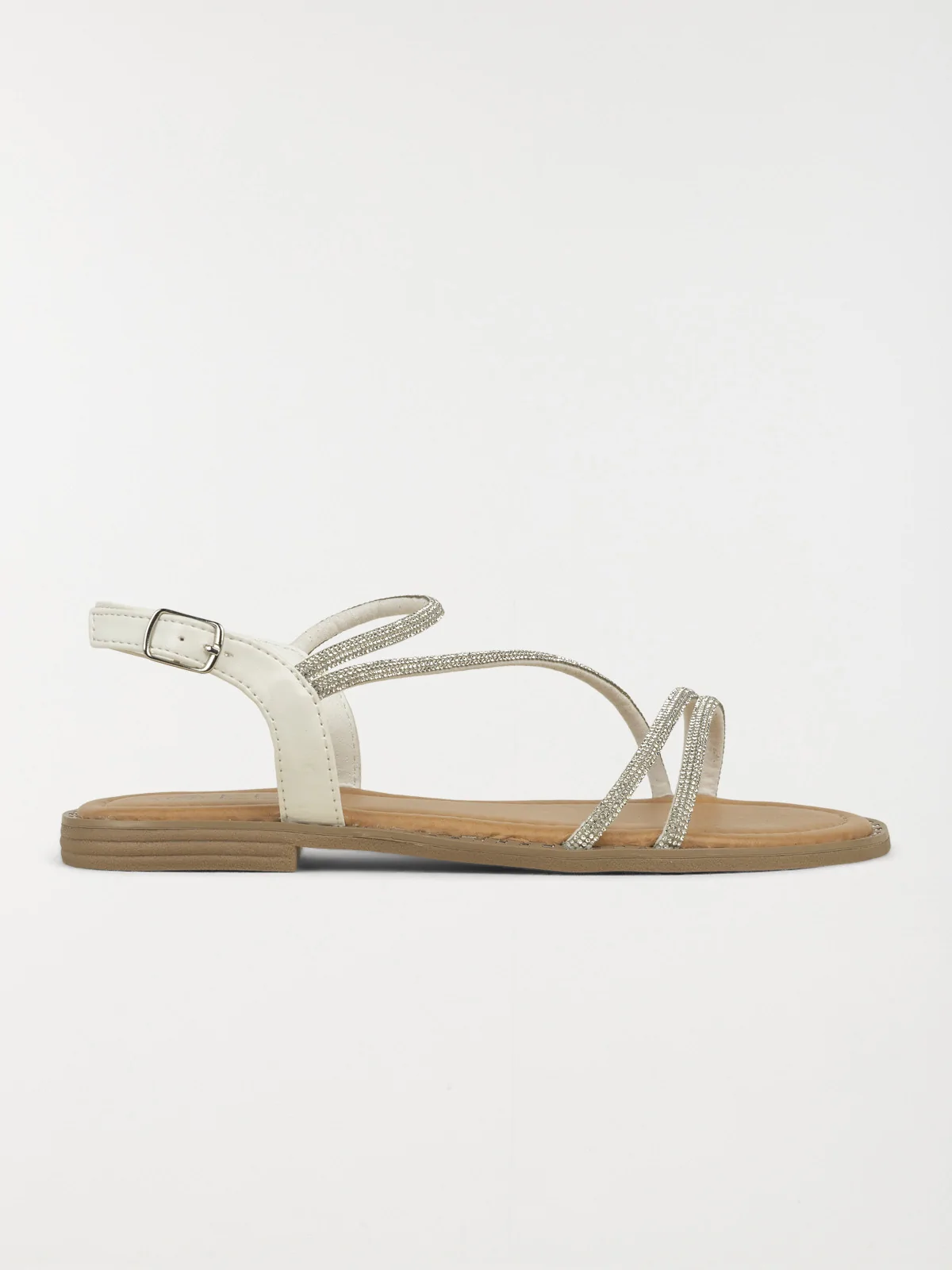 Ajoutez une touche d'éclat à vos tenues estivales avec ces sandales blanches à brides fines ornées de strass ! À la fois légères, élégantes et confortables, elles sont idéales pour passer du look de jour au look du soir sans effort. C'est le mélange parfait entre confort et glamour, pour briller en toute simplicité.