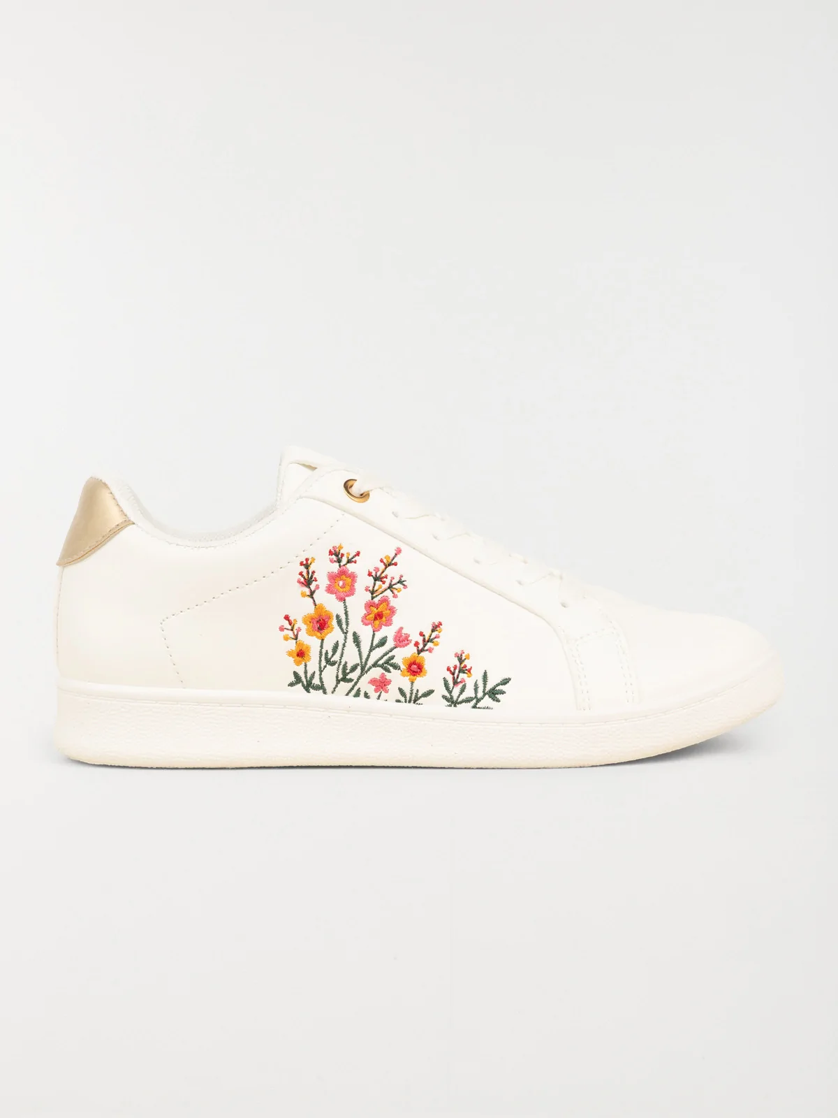 On craque sans hésiter pour cette jolie paire de baskets ! Ce modèle, orné de fleurs brodées sur le côté, vous accompagnera en toutes circonstances.