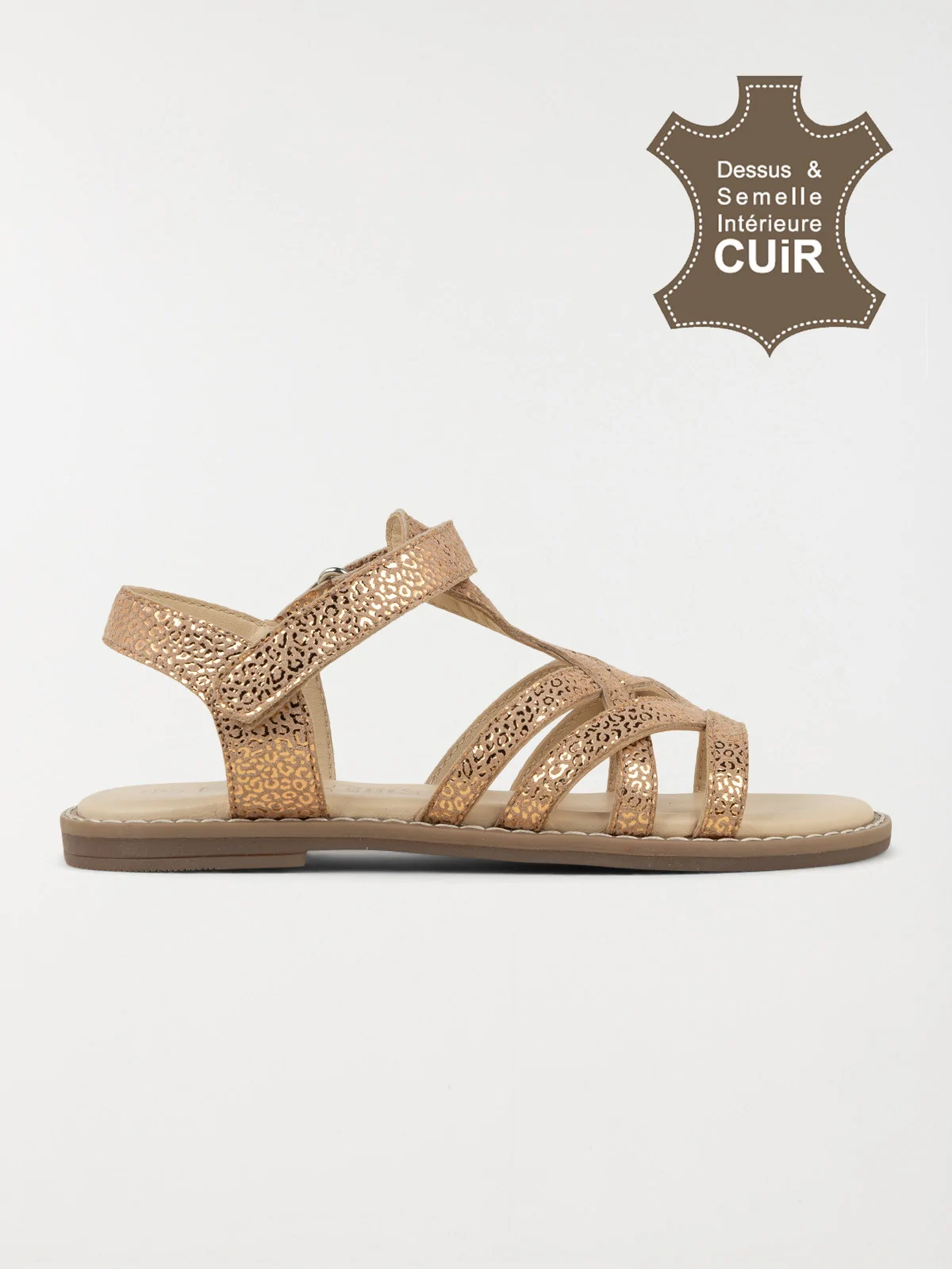 Des sandales tendances au motif léopard irisé, parfaites pour apporter une touche de brillance aux tenues estivales des petites filles. Confortables, légères et faciles à porter au quotidien !