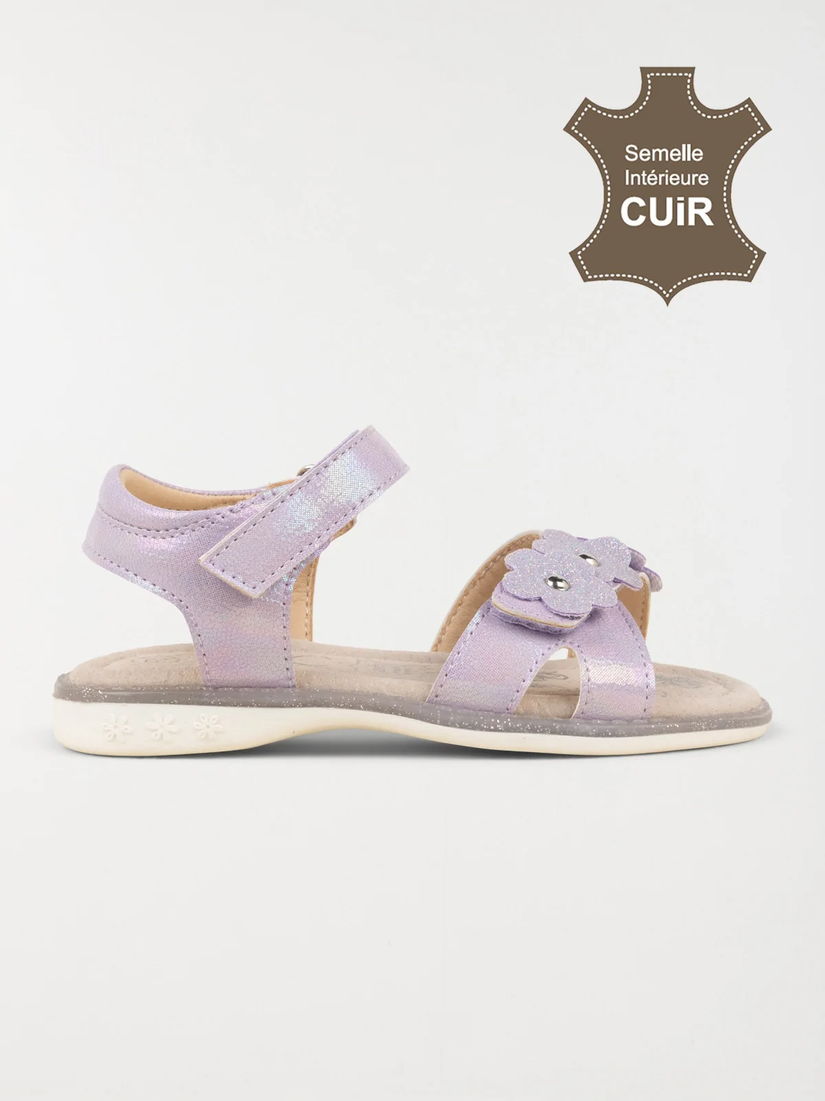 De ravissantes sandales lilas décorées de fleurs 3D sur l'avant, avec 2 scratchs pour un maintien parfait. Un modèle girly, confortable et idéal pour les beaux jours !