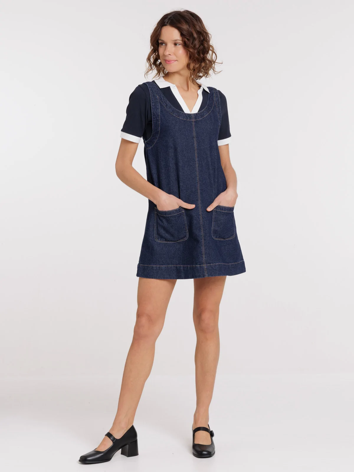 Retour vers les sixties* avec cette robe en jean au style rétro ! Inspirée des silhouettes emblématiques des années 60, elle séduit par sa coupe trapèze et son allure à la fois féminine et décontractée. Confectionnée dans un denim en coton et confortable, elle se porte seule en été ou superposée sur un t-shirt.