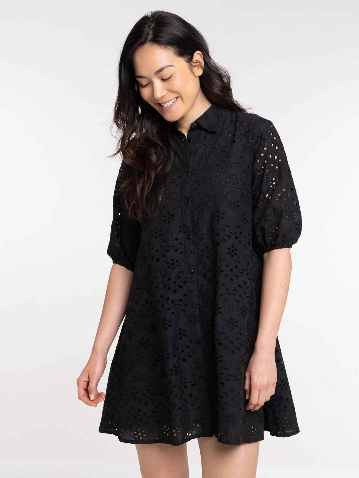 Robe noire broderie anglaise femme