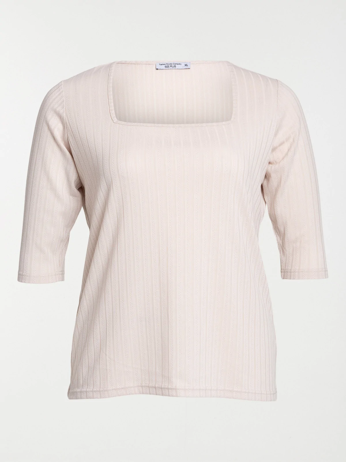 Féminin, délicat et confortable, ce t-shirt en maille joliment travaillé apporte une touche raffinée à votre tenue du quotidien. Son col carré met subtilement en valeur le décolleté, tandis que sa coupe aisance et élégance.